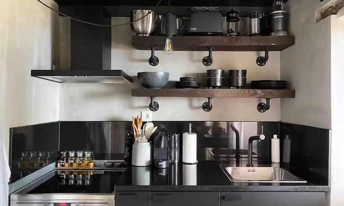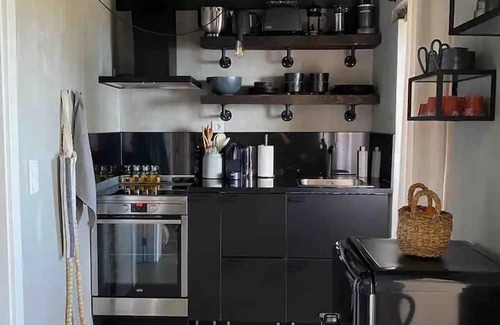 This 1-bedroom, 1-bathroom rental features a living room and a fireplace. Bathroom amenities include a hair dryer, towels, and toilet paper. The kitchen is equipped with an oven, a stovetop, and a refrigerator, as well as a coffee maker, an electric kettle, and cookware. And there is a laundromat nearby so you can pack a bit lighter.