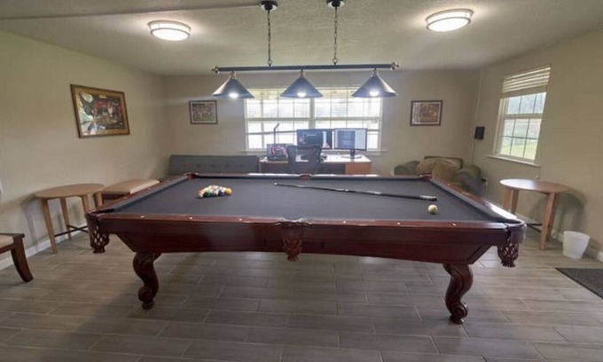 Tucked away in a family-friendly neighborhood, our spacious and comfortable home is the ultimate getaway for relaxation. Be enchanted by the serene ambiance and breathtaking lake views that greet you at every turn. Guests have exclusive access to a private path leading to the dock, where you can bask in the sun, catch fresh bass or catfish or your morning coffee. Our expansive backyard beckons outdoor enthusiasts with plenty of space for games and a BBQ grill, while the screened-in dining area allows for delightful al fresco meals. To keep your energy levels up, we provide an exercise mat for your convenience.