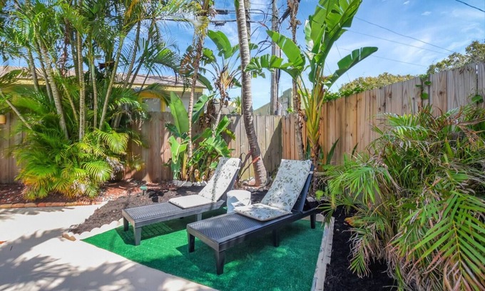 Nestled in the heart of WPB, The Lili Pad is a "Walkable Destination," that offers an intimate boutique resort-style getaway, combining luxurious comfort with artistic charm. This exquisite property is designed to provide guests with a serene and personalized experience, making it an ideal retreat for relaxation and exploration. Private Pool and Backyard. This tranquil oasis is perfect for sunbathing, swimming, or unwinding amidst nature.