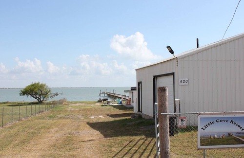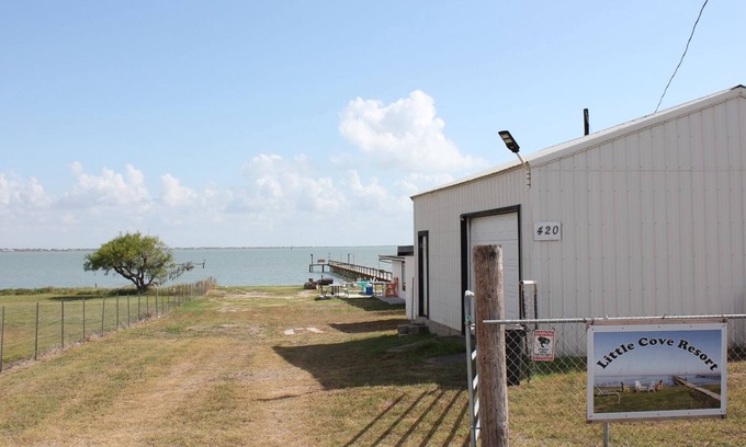 Welcome to Little Cove Resort, your new waterfront getaway! A fishermans paradise, this half acre gated and fenced property has amazing views of Copano Bay and its very own 320 foot private lighted fishing pier. The pier is lit from above and also has green lights for optimal night fishing. There is a fish cleaning station with water for your convenience as well. Inside this bright and welcoming bay front home, you will find a spacious open dining and kitchen area. The dining table has seating for 6 and there is a two seat pub table for additional seating. The fully stocked kitchen features sleek white appliances and comes with everything you need to whip up a meal or a pitcher of margaritas. The living room offers cozy and comfortable reclining sofas and wonderful views of Copano Bay. Bedroom one has two twin bunk beds and is perfect for the kiddos. Bedroom two has a queen bed and attached bathroom. Bedroom three has a queen bed and shares the second bathroom with bedroom one. There is a charcoal grill on site for cooking up the days catch. Dine al fresco at the picnic table while taking in amazing water views. Enjoy the evening salt breezes as you relax around the water front fire pit with a cool beverage. Bring out the cornhole game for a friendly competition. Teach the kids to fish and see their faces light up when reeling in that first fish. Ready to make memories that will last a lifetime? Book your next getaway at Little Cove Resort. Just 20 minutes from downtown Rockport and a short drive away from the Port Aransas Ferry.