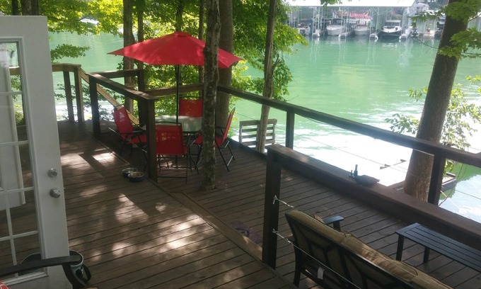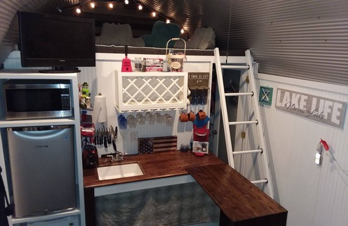 the Little Dipper is back for the 2025 season after a 2 year break! Newly renovated, be the first to enjoy the new couch, new bed, new mattresses, new floors, new paint, new bbq, outdoor lighting, fire pit, linens, movies, water toys, games ect. Lake front trendy tiny home located in Stardust Marina on beautiful Norris Lake! Private boat dock so bring your boat and jet ski's! Come enjoy true lake life living! Don't have one? No worries, Stardust Marina also offers boat rentals, as well as a restaurant with live music on Saturday nights and a gas station for water crafts. The Little Dipper has approximately 50 ft of lake frontage with direct land access on a beautiful lake front wooded setting. Plenty of room for a dog or the kids. Private driveway/parking. Lots of outdoor space perfect for entertaining. Double decks with gas grill, fire pit and hammock. Outside patio set for 4. Outdoor living room with couch and coffee table and 2 additional lounge chairs. The Little Dipper is just a 2 min boat or jet ski ride by water to Stardust Marina, by car 3 mins, and a 10 min walk. The Little Dipper is 15 mins to restaurants, shopping and the interstate. Sleeps 6 Downstairs has the master sleeping area with a queen size bed, wardrobe with closet rack and a 2 drawer dresser. There is also an upstairs loft that is the second sleeping area with a full size bed. Downstairs has a sleeper sofa that is full size. Please just please keep in mind it is a tiny home. There is also another lounge area for kids in a second upstairs loft. All games, cards, DVD's, corn hole ect is there ready for you to play! That loft is perfect for kids wanting to read a book, color, play on a tablet, board games or cards. In the storage shed there are floaties to enjoy on the water, inside the shed there is also a floor fan and a heater. The house has 2 wall ac units. It's always been plenty enough to keep the house cool after a day in the sun. Kitchen has fridge, freezer, microwave, toaster oven, counter top 2 burner electric stove, 2 NuWave precision induction cooktops. 1 with 2 copper pans and the other one with a stainless steel pot and steel steamer basket just for the Nuwave. It also has a toaster, kurig coffee maker, a 5 in 1 flat top mini griddle and dual grill(indoor smokeless) Full size residential size bathroom with full size shower and tub combo. Come enjoy swimming, boating, fishing right off the private boat dock, kayaking and more on beautiful Norris Lake.