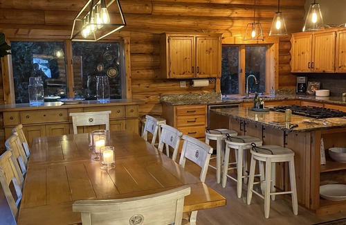 Magnificent, custom 2,000 square foot log home on 100 acre sustainable family farm. The Lodge at Dolan Creek was completely refurbished from top to bottom in 2021. With two king bedrooms and a bunk room for the kids, it is the perfect escape for families looking to connect and freely roam. No detail was overlooked, from a fully stocked gourmet kitchen to 400 thread count sheets. Pour a mug of coffee and watch the sun rise over Mt Hood. The Lodge is a space to connect, unwind and recharge.
