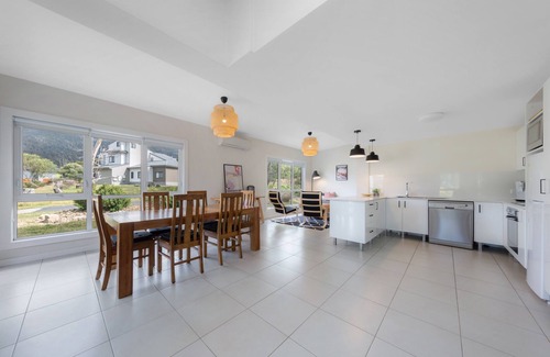 From the moment you arrive, you’ll notice how every detail in The Lodge is curated for comfort. The open-plan living space is warm and inviting, with an L-shaped lounge and smart TV (plus Telstra TV) for relaxing after a day in the mountains. Underfloor heating, split system air-conditioning, and double-glazed windows ensure the temperature is just right—whether it’s snowing outside or the summer sun is shining.