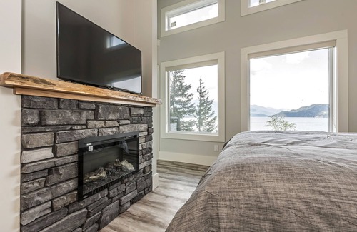 Guest Suite 2 is spacious and modern with stunning direct lake views and its own private balcony. Our guest suite sleeps 2 with a queen size bed, a 40″ flat screen tv, a fireplace and multiple windows overlooking beautiful Harrison Lake. The kitchenette has a microwave, mini fridge, toaster, Keirug, large salad bowls, 4 plates, 4 bowls, 4 sets of cutlery, can opener, kettle, steak knives, cutting board and a bottle wine opener.
