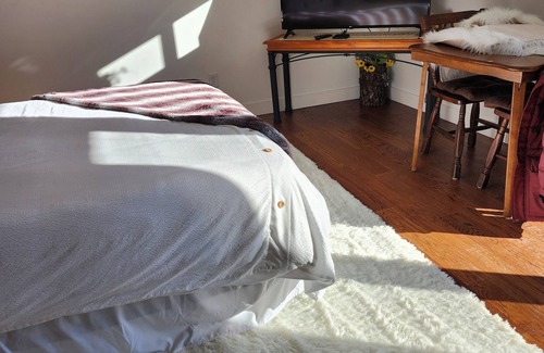 Cozy & Comfy LOFT with a private deck completely separate from main house. The Loft has everything you need for short term stays. Kitchen has gas stove, fridge, coffee machine, toaster, etc. Shower over bath, TV & free WiFi. There is a gas fireplace to keep you cozy in the winter & A/C to keep you cool in summer months. Free parking in our over size gated driveway. All linens & towels etc are new, white & sanitized! We want you to know our Loft is very clean so you can relax & enjoy your stay.