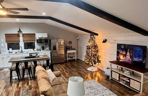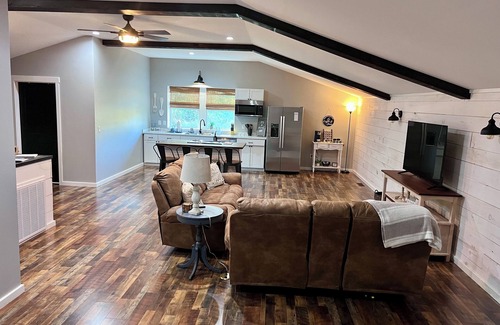 The Loft is a stylish and cozy barndominium-style guesthouse built in 2024. It is located behind our home and has a private entrance. The farmhouse decor and open concept will make you feel right at home. We are in a great location in the country, only minutes from key local spots, including Dayton Boat Dock, Spring City Boat Dock, Bryan College, local restaurants, shopping, walking tracks, and hiking. There are food delivery options at this address as well.