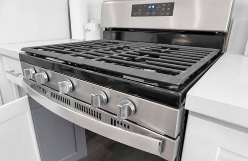 Stove | Oven | Refrigerator | Microwave | Toaster | Water Kettle | Coffee maker | Brita Water Filter | Cooking utensils | Silverware | Oven mitts | Plates and bowls | Mugs, cups, wine glasses | Dining table