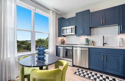 You will enjoy easy access to everything from this centrally located place. This luxe apartment is located in the heart of the city, minutes away from top rated attractions. This location is walkable. It is also located near public transit. There are many beautiful amenities onsite which include a pool, fitness center, outdoor area w/grills, fire pit, work area, etc. The unit features beautiful big windows with lots of natural lighting & onsite parking.