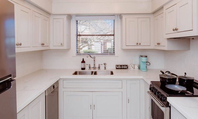 The Lydia is a furnished townhome. Our units feature full-size kitchen with cookware and utensils. Outside the unit is an attached two car garage with washer/dryer and fenced in patio for your enjoyment. Several restaurants are in driving distance. The 15 unit complex is located in a friendly and quiet neighborhood. Beautiful landscaping maintained.