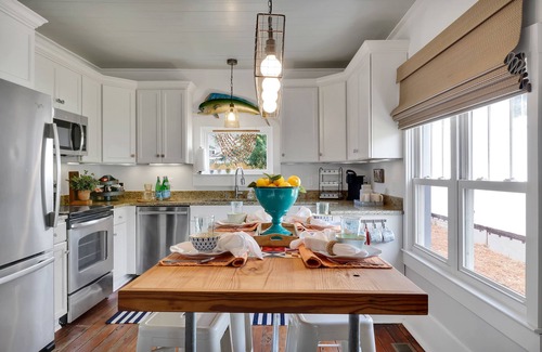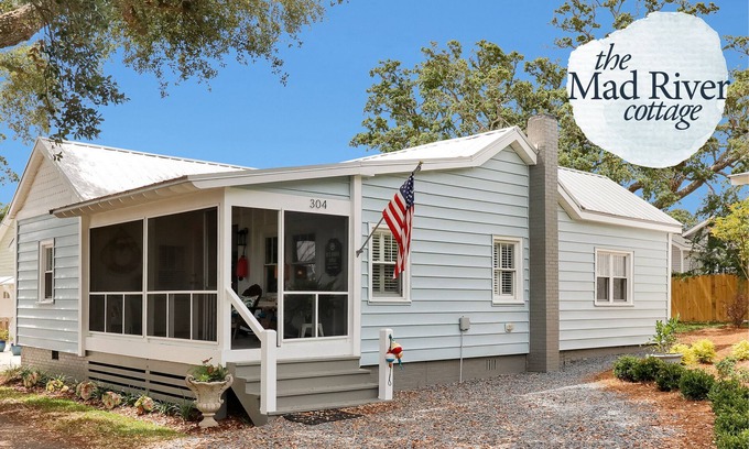 3-night minimum stay - Step inside the Mad River cottage and you will want to stay forever. Built over a century ago and surrounded by centuries-old live oaks, the two-bedroom cottage is the perfect retreat for a week or a weekend away from home. Inside you’ll be delighted by the cheerful color pallet and comfortable furnishings. Outside you’ll have the opportunity to sip your morning coffee on the small screened porch or dine al fresco beneath a lumbering live oak. You’ll be walking distance from everything the village of Southport offers—from boating to shopping to dining to fresh local seafood and of course all the famous spots featured in the Safe Haven movie—- all are just steps away from the cottage. Plus, if it’s beach time you crave, you’ll be a short 15-minute drive to all the white sand and ocean waves you can imagine! Come enjoy one of the happiest seaside towns in America and stay in the Mad River Cottage...it may be your first time but we’re sure it won’t be your last! Oh, and if you're wondering why it’s the Mad River Cottage check out this website: madriverdesigns.com, and be sure to stop by the Mad River Studio & Store for the best shopping in Southport.