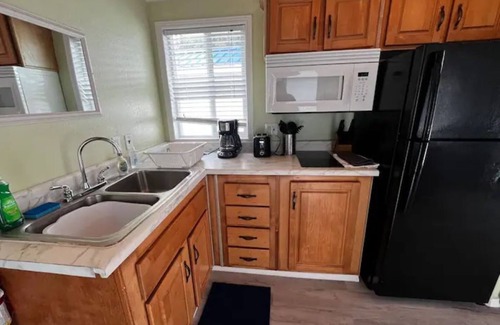 Come enjoy our adorable cabin-style tiny home! The Majestic Marlin is a perfect get-away to enjoy the tranquil breeze & beautiful sunsets! We offer comfortable beds and peaceful rest for guests who want to bask in the warmth of our seasons. Located in La Mirada Country Estates, a family-friendly park with pool access!