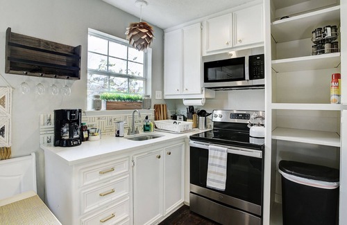Experience tranquility and relaxation at this centrally-located guest home in Houston Heights. This space is perfect for traveling professionals and vacationers looking for small town living with ultra proximity to the hustle and bustle of the city. Walkability to hike and bike trails, boutique shopping, exercise gyms, coffee shops, and fine dining is just one of many premier amenities of this charming neighborhood.