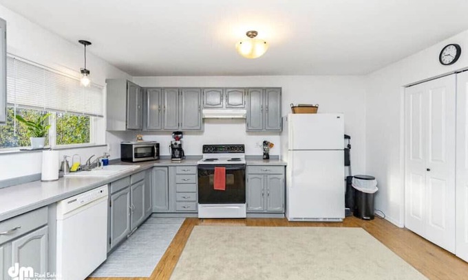 Kitchen is fully stocked to cook up and enjoy any meal that you are craving. 4-burner range, oven, microwave, refrigerator, freezer, ice maker, dishwasher, blender, crockpot, toaster, baking sheets, mixing bowls, and much more. If there’s anything you need for your stay, please don’t hesitate to reach out to us and we can verify if we have it.