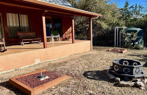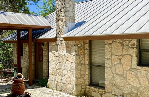 This cozy rock cabin is located in prestigious, gated Cypress Bend and situated on one of the very best locations on the Frio River. Great river views from inside the house, Winding Springs is perched on a limestone bluff above the Frio River. A rock staircase takes you down to your own picture-perfect riverfront. Awesome views overlooking the mountain range, cliffs and the Frio River!