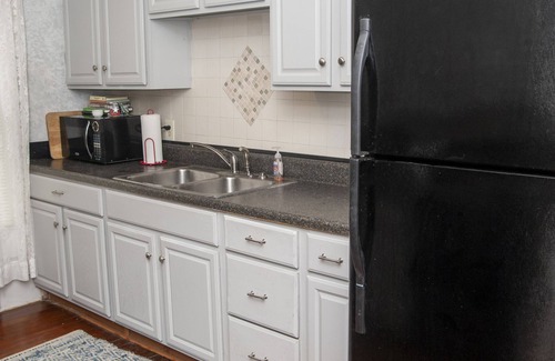 The house includes three bedrooms, two full baths, fully equipped kitchen, sleeps 9: Two twins convertible to King , double, 3 twins (2 convertible to king), and 2 day beds . Central heat and air conditioning, baseboard heat, two fireplaces with gas logs, fire pit, deck, wrap-around porch, screened porch area, gazebo and gardens. Plenty of on or off-street parking. Located one block north of Main Street.