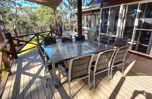 Tucked away in serene bushland, this sprawling home blends rustic charm with modern comfort. The large wraparound deck with a BBQ provides the perfect space for outdoor dining, socialising, or simply unwinding while listening to native birdlife.
