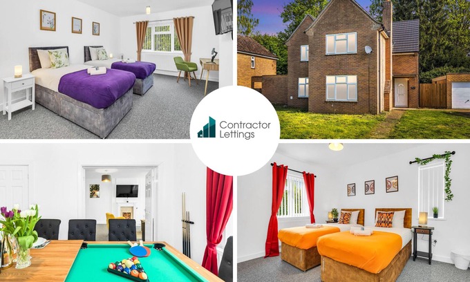 Nestled in the picturesque neighborhood of Brampton, Cambridgeshire, this stunning refurbished detached house provides a warm and comfortable retreat for up to 8 guests across 3 spacious bedrooms. With its luxurious interiors, the property showcases a bright living/dining room adorned with modern decor and high-end furnishings including pool table / tennis table. The bedrooms offer plush bedding for a restful night's sleep, while large windows frame captivating views of the surroundings. A fully equipped kitchen, complete with modern appliances, complements the dining area featuring a generous table for 8. The house also features a delightful private garden with BBQ, dedicated workspace, free off-road parking, Netflix, and high-speed Wi-Fi. Conveniently located, it allows easy access to Huntingdon, St Neots, Cambridge, and Peterborough, making it an ideal choice for contract workers, corporate guests, travelers, and families alike.