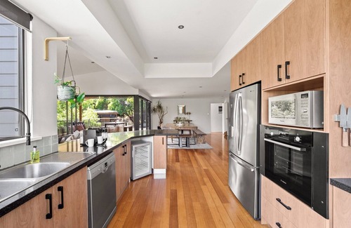 Out in the backyard there is a trampoline for the kids to enjoy and a private sauna for the ultimate relaxation! There is a small grassed area and native gardens. There is an outdoor shower to cool off after the sauna, or rinse off after the beach.