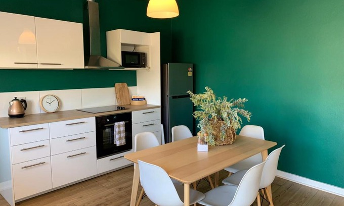 BathroomPrivate bathroom, Bathtub or shower, Toilet paper, Toilet, Shampoo, Conditioner, Towels, Shower, Hairdryer, Body soapMedia & TechnologyTV, Flat-screen TVGeneralElectric blankets, Hardwood or parquet floors, Heating, Iron, Key access, Air conditioning, Fire extinguisher, Private entrance, Smoke Alarm, Trash cansKitchenOven, Kitchen, Electric kettle, Washing machine, Dishwasher, Microwave, Cleaning products, Refrigerator, Wine glasses, Dining table, Toaster, Kitchenware, StovetopLiving AreaSofa, Dining areaBedroomWardrobe or closet, LinensAccessibilityEntire unit located on ground floorBuilding CharacteristicsSemi-detachedRoom AmenitiesSocket near the bed, Feather pillow, Sofa bed, Drying rack for clothing, Clothes rack, Non-feather pillowCleanliness & disinfectionHand sanitizer |