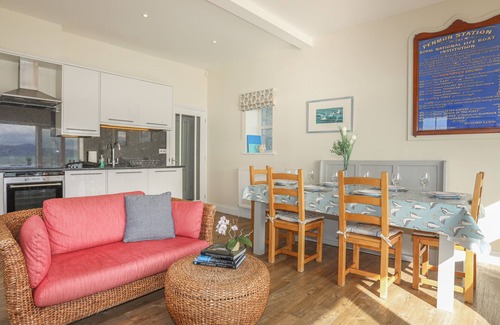 Romantic and atmospheric - step out to the balcony, where the remains of the old lifeboat slipway can be seen in this beautiful south east corner of Anglesey, and hear the sound of seabirds, the salty smell of the sea and the mournful gong of Trwyn Du lighthouse, you might even be lucky enough to see a dolphin pod while relaxing on the balcony with a morning coffee or evening glass of wine. The open plan living, dining and kitchen area is a lovely bright and contemporary space.The living area has cane sofas and chairs and a wood burning stove with a dining table and chairs to seat 8 comfortably.The kitchen has an oven and hob, fridge/freezer, dishwasher, microwave, toaster and plenty of pots, pans, crockery and utensils.French windows lead to the balcony which has spectacular views and is equipped with garden furniture. The rear hallway has a door opening to the garden with a footpath down to the water’s edge. A second cosy sitting room has two sofas and large, flat screen TV and DVD player, and lovely views out over the sea. The washing machine is house in a cupboard in the front hall. There is a ground floor twin bedroom and shower room with large shower cubicle, loo, wash hand basin and heated towel rail.Upstairs there is the master bedroom with king size bed and en-suite shower room with shower, loo, wash hand basin and heated towel rail.There is a further twin room upstairs and a family bathroom with large bath and hand held shower attachment, loo, wash hand basin and heated towel rail. There is a graveled drive and parking area and a large, natural, lawned garden. Just a short drive will take you into the bustling seaside town of Beaumaris, enjoy it's many interesting shops, cafés and restaurants or soak up some culture in the castle or Victorian gaol. There's so much to do on Anglesey...that's if you can drag yourselves away from the sea views at this stunning holiday cottage!