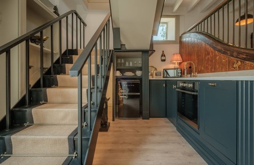 Steeped in history the Old Stables retains many charming original features. The original polished wood and iron stalls separate the current ground floor living zones into bespoke kitchen, dining and living areas.