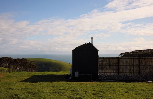 Being situated at the top of a hill and overlooking the ocean, there is often a fresh breeze. The outdoor wood fired bath and fire pit area is cocooned by a screen which acts as a southerly wind break. The wood fired bath may take an hour or two to heat to a comfortable temperature. This creates the ultimate off-grid indulgence when paired with a glass of local wine (Dudley Wines is situated next door or False Cape Wines is just down the road!)