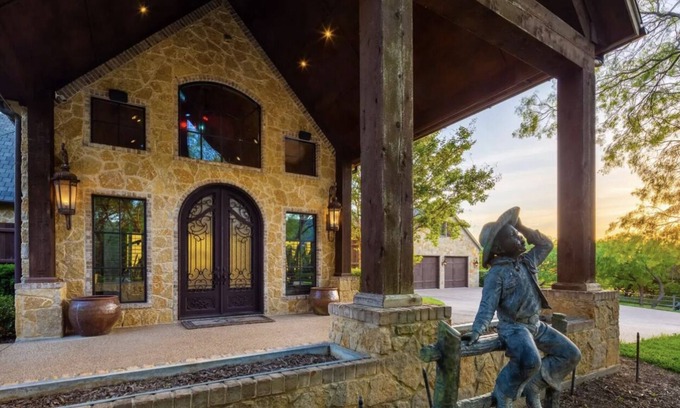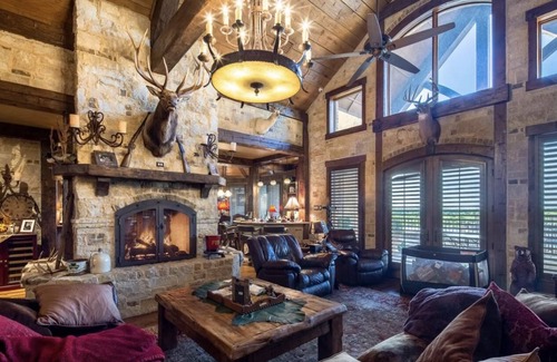 Enjoy a luxury ranch that boasts beautiful views of Texas landscape. The property includes a 7000 sq. ft. Texas style main house with 5 bedrooms, each with its own bathroom and an additional half bath downstairs near the kitchen and outdoor area. It also includes an office and game room. The large gourmet kitchen includes a wet bar, ice machine and wine cooler that overlooks the living space with views of the see-through fireplace. Off the kitchen, you can enjoy the infinity pool with overlooking views of the gorgeous rolling acreage.