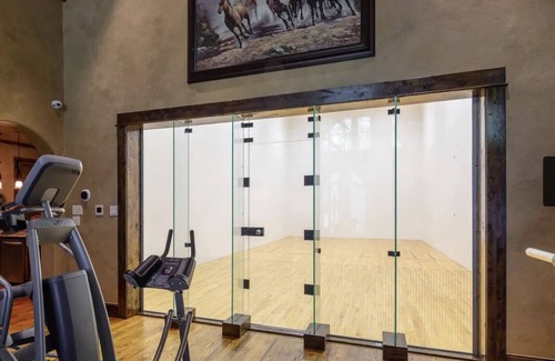 Next door, you can take full advantage of the additional amenities of the 4,000 sq. ft. recreation house that has 2 bedrooms, each with its own full bath, a standalone large steam room and massage room. Additionally, there's a full kitchen, separate half bath, and an enclosed racquetball court. Outside you'll enjoy a full-size tennis court that doubles as a basketball court. The rec center is also perfect for work meetings with its standalone conference room that can accommodate up to 75 people comfortably.