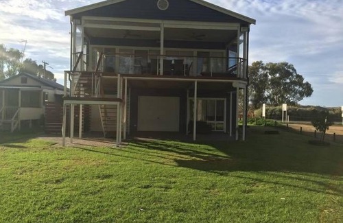 The living room consists of Rumpus room, high chair & stroller, kiddies toys and DVDs', from the living area extends the large deck overlooking the lawn to the river’s edge, complete with ample seating, ideal for outdoor dining, ceiling fans, patio heater and café blinds providing all weather comfort whilst you relax and enjoy the views and listen to your choice of music from the surround sound stereo system which works wirelessly via Bluetooth from your smart phone in the home and separately to the balcony speakers as well. the kitchen boasts a microwave, cooking facilities, coffee machine with the option of a barbecue outdoors.