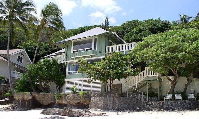 Hale Kainalu is a sweet getaway at the end of Lanikai with exclusive secluded beach used by only 5 houses within a gated drive. This beautiful cottage is literally right on the beach & overlooks the crystal clear, blue and green hued water. Wake up each morning to a glorious sunrise to start your day. The sound of the ocean fills the whole house which gets a gentle breeze most of the year. This cottage has a well appointed kitchen & gas bbq on the large lanai. It's bright interior is comfortably furnished and there is plenty of room to stretch out on the decks & beach. There is a full kitchen upstairs and another kitchenette in the studio that has an under-counter refrigerator, 2 burner hot plate and coffee pot. The home has all king beds plus a pull out queen sofa in the studio downstairs. This is the perfect place for ocean sports, or just sitting back with a good book & a glass of wine. Don't be surprised if you see giant sea turtles swim up to say hello. You can let the rest of the world melt away in this little piece of heaven.