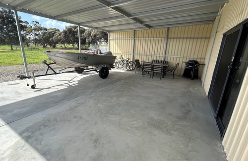 The Perfect Retreat is a newly built guesthouse located on a farm property only minutes away from Port Lincoln. With 2 generous sized bedrooms (1 x Queen, 1 x Double & 1 x Single), along with a lovely spacious living area and a very modern bathroom, you will appreciate the comforts of A/C throughout. Fresh linen and towels are provided to guests and the entire property is supplied with clean filtered rain water. A wide open outdoor area located out the front of the unit is the perfect spot to unwind with a cold drink and immerse yourself in the beauty of outdoor living. Cook up a feast with the Webber Q whilst taking in the amazing scenery. Ample parking spaces are available for trailers, boats and caravans. A small tinny may also be available to hire to guests whilst staying (Please refer to property info once checked in). Pets are allowed at an additional cost and we welcome longer term stays with a discounted rate available.
