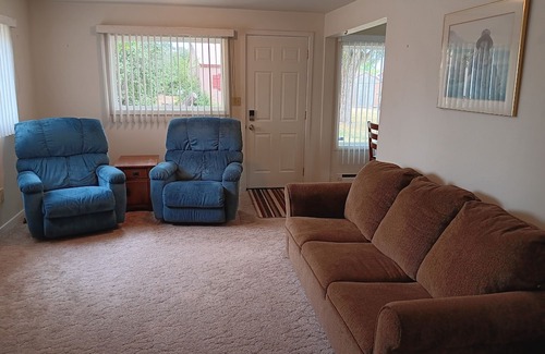 Parking is located right beside the cabin with easy access. There are 2 steps to enter our cabin along with a set of narrow stairs to enter the upstairs loft. The kitchen table chairs are more stool like and are higher then the average chair. If you need assistance to reach higher things, please contact us and we will try our best to help accomadate you or answer questions about the property.