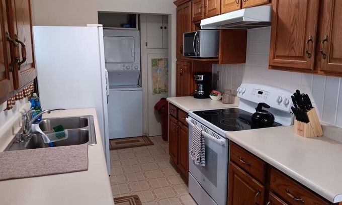Our cabin features 2 bedrooms, one queen bed and a twin/full bunk bed. As well as a queen sleeper couch with a memory foam mattress. Smart TV and wifi. Washer/dryer is provided in which we include detergent for your use. In our fully stocked kitchen we provide a full size refrigerator/freezer, dishwasher with detergent, coffee pot and filters.
