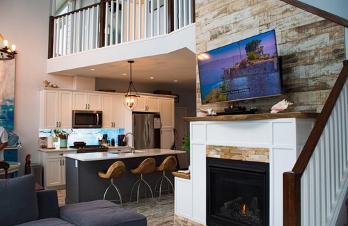 Your adventure starts with all of the comforts of a luxurious and unique lake view cottage. The island kitchen has everything you need to unleash your culinary skills. Provided for you is a wide array of spices, common dry goods, and most pantry items you’d find at home. Simply bring your fresh meats and vegetables and stock the spacious refrigerator, complete with built in ice maker and fresh filtered water. Many small appliances are available for your convenience, including a double drawer air fryer.