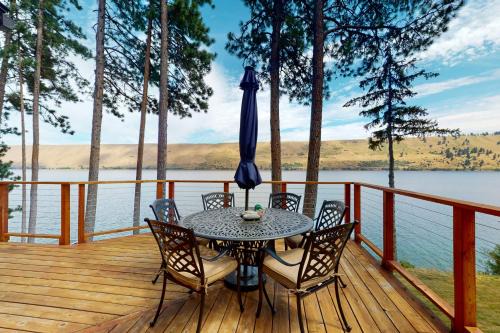 Food & DrinkTea/Coffee makerMedia & TechnologyTV, Streaming service (like Netflix), Video, Flat-screen TVGeneralIroning facilities, Iron, Carbon monoxide detector, Smoke Alarm, Air conditioning, Fire extinguisher, HeatingBathroomConditioner, Towels, Body soap, Hairdryer, Toilet paper, Private bathroom, Free toiletries, ShampooKitchenDryer, Oven, Microwave, Kitchen, Dishwasher, Kitchenware, Refrigerator, Washing machine, Stovetop, Coffee machineLiving AreaSitting area, Dining areaViewLake view, Mountain view, ViewOutdoorsBarbecueBedroomLinensAccessibilityEntire unit wheelchair accessiblePhysical distancingSingle-room AC for guest accommodation |