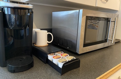 The kitchen is supplied with a Keurig coffee machine, complete set of pots, pans and dishes. Bathroom towels and extra blankets, pillows are there for your convenience.