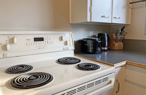 The Puzzle House! This quaint upstairs 2 bedroom suite is located close to all amenities. Large back yard and a fire pit. BBQ for your spring and summer enjoyment. We thoroughly clean & disinfect the place after each stay.