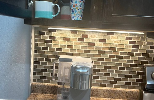 The rooms are large with a king bed in the master and queen beds in the other rooms with plenty of space to move around the bed. Each room has lots of closet space and comes with nightstands and touch lamps that provide convenient charging locations for your mobile devices and/or laptop computers. The kitchen is fully equipped with updated appliances, reverse osmosis, filtered water, and the convenience of a Keurig to make getting a cup of coffee quick and easy. The home has a covered patio area that is situated for afternoon shade with an outdoor TV and patio seating for 6+ to make your stay as comfortable as possible.