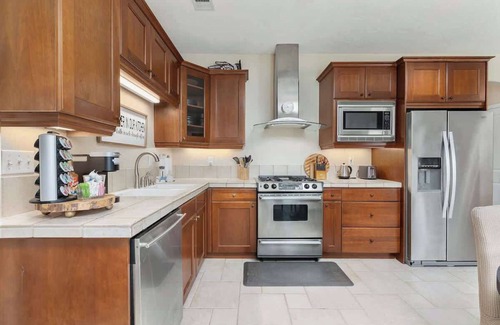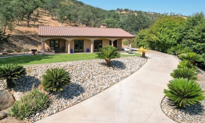 Welcome to the Ranch Guesthouse, a private house that doesn't feel like a guesthouse at all. This spacious two bedroom guest house is perfect for up to four people traveling to the Sequoias, in town for a wedding at one of the many nearby venues, or in need of a peaceful retreat. Situated on a hill, the home overlooks expansive pastures with cows (named after the Kardashians!) and horses. You're welcome to walk down and visit them! Minutes from the quaint town of Springville, restaurants and conveniences are just a short drive away. Beautiful views of the Sierra mountains all around! Enjoy impressive views, a calming water feature, fresh air, and all the conveniences of home in this cozy ranch casita. Though it's a guesthouse, it's far enough away from the main house that it feels private.