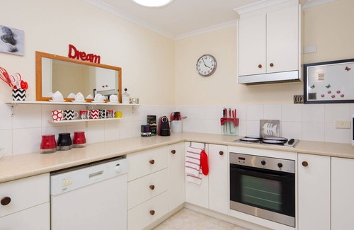 The kitchen is fully equipped with electric cooking appliances and all you need to cook up a storm and a dishwasher for your convenience. The unit has a private courtyard which is perfect to relax in whilst reading a book or simply enjoying the warm afternoon sun.