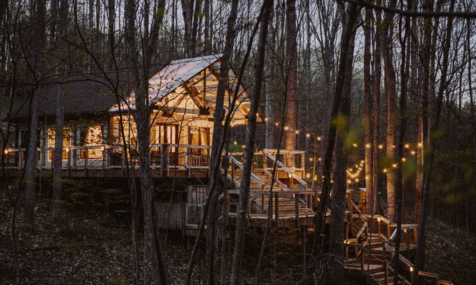 Your Hocking Hills luxury safari experience! The Reserve offers the look and feel of a luxury canvas safari tent, highlighted by all season enjoyment with A/C & heat! Nestled among the trees of our famous treehouses, there are endless views that surround you. A short drive to the main attractions of Hocking Hills!