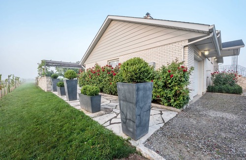 The Residence On Seven, nestled in the vineyards of On Seven Estate Winery, in the heart of the Niagara Wine Route, minutes from Old Town. A perfect setting to visit wineries, bicycle along the Niagara River, attend the theater, sightsee, or simply enjoy the beauty of the residence’s grounds and panoramic views of vineyards, the Niagara Escarpment, Brock’s Monument, and the Lewiston Bridge.