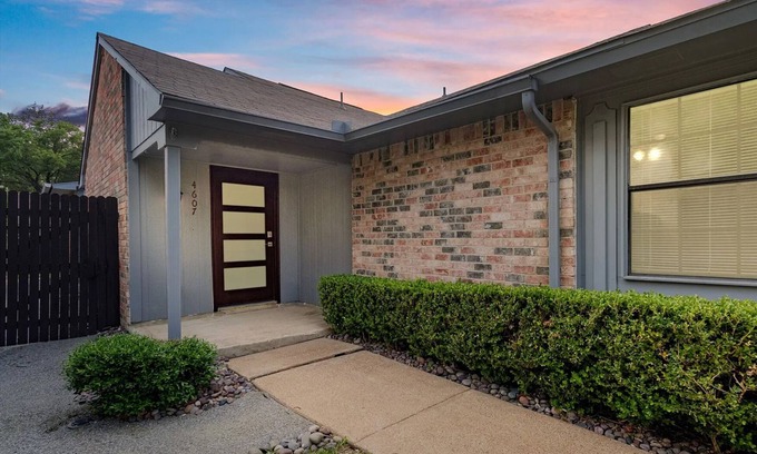 Nestled in The Colony, this charming house features 2 cozy bedrooms with queen beds, 2 bathrooms equipped with all the essentials, living room sofa unfolds to allow an additional queen bed sleeping space. The backyard has a nice concrete patio with doors from both the primary bedroom and dining area, and 2 fenced parking spots at rear of property.