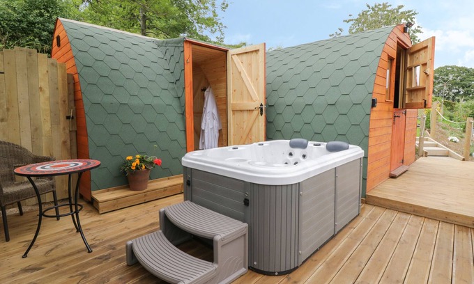 The Rhiw is a detached pod resting in Newton in Powys. Hosting a open-plan living area with a king-size, kitchen space and dining area, along with a shower room, this property can sleep up to two guests. To the outside, there is an enclosed garden with a lawn, terrace, hot tub and seating, while off-road parking is available for one car. The Rhiw is a unique countryside experience for a romantic getaway. One dog is allowed. Note: Can you please apply the dog to your itinerary if you are bringing one, failure to do so will incur a charge of £75