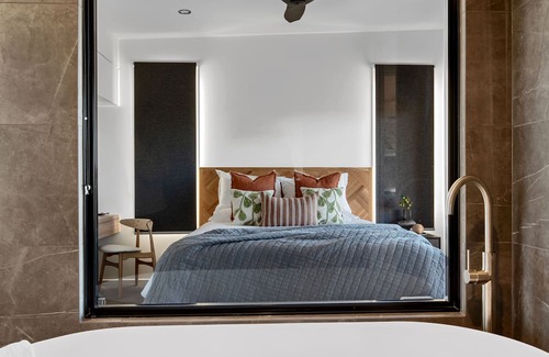 Featuring 2 spacious master bedrooms (King and Queen beds), both with uninterrupted valley views, accompanied by 2 master bathrooms. Free standing bath tubs, walk in shower, double basin vanities and designer tapware provide that next level experience. The 3rd bedroom with 2 king single beds is perfect for children or friends that prefer a little more space.