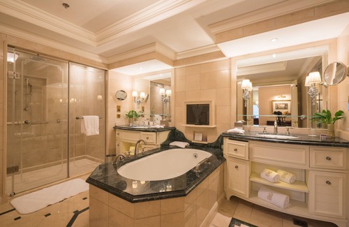 The Ritz-Carlton, Beijing offers 305 accommodations with indoor private hot tubs and iPod docking stations. Each accommodation is individually furnished and decorated. Pillowtop beds feature down comforters and premium bedding. A pillow menu is available. 42-inch LCD televisions come with satellite channels. Refrigerators, coffee/tea makers, and minibars are provided. Bathrooms include separate bathtubs and showers with jetted bathtubs and rainfall showerheads. Bathrooms are also outfitted with bathrobes, slippers, and designer toiletries.