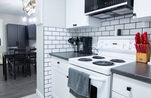 Welcome to The Riverbend, a stylish black-and-white studio just a 4-minute walk from Harrison Lake. Perfect for couples, solo travelers, or a small family, this thoughtfully designed suite offers cozy comfort, a private balcony, and all the essentials for a relaxing lakeside stay.