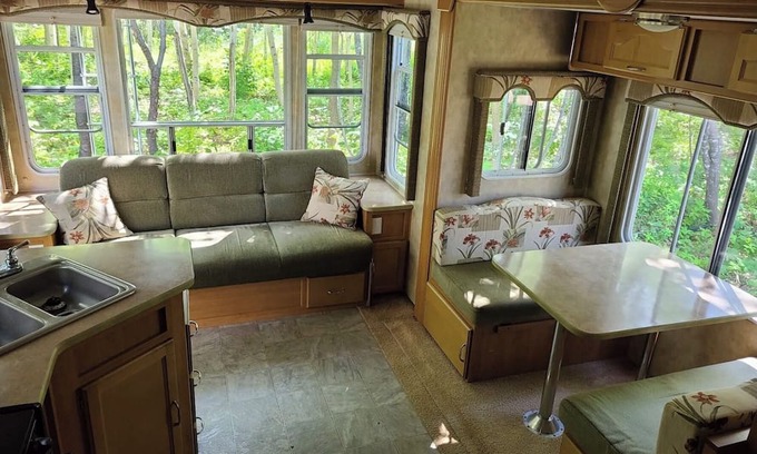 Minutes from the Cabot trial, Windchaser sits on site #2 at the Retreat property. The natural beauty of this place will have you to wanting to stay forever, with wildlife, the beautiful river, hiking trails galore, water-sport equipment, and amazing beaches a quick drive or paddle away. Be sure to bring your camera!!