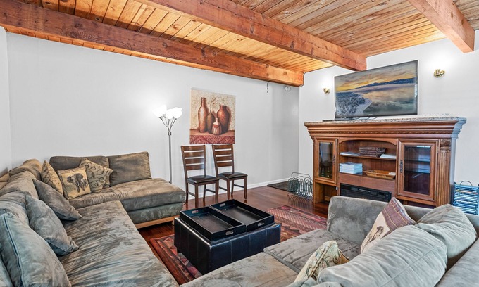 ROOMS & BEDS - 2 bedroom, 2 bath. Upstairs master bedroom has a queen bed, smart TV, and private bath. Second bedroom has a double/double bunk bed, smart TV. Extra blankets and pillows are available.
