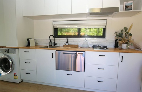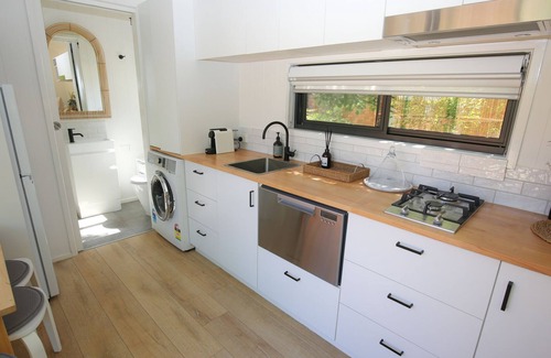 Discover the charm of tiny living in this thoughtfully designed Tiny Home, where every detail has been carefully considered to offer a cosy yet luxurious retreat for couples.
